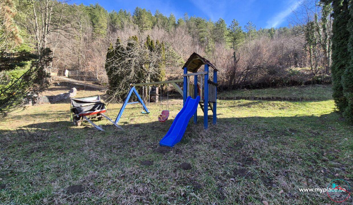 Sadržaji na imanju: fontana, šedrvan, više roštilja, ljulja i tobogan za djecu, mali bazen, popločana staza od cigle uz samu rijeku, natkriveni dio za odmor, direktan pogled i pristup rijeci. Idealno za privatni odmor, porodična okupljanja ili turističko iznajmljivanje.