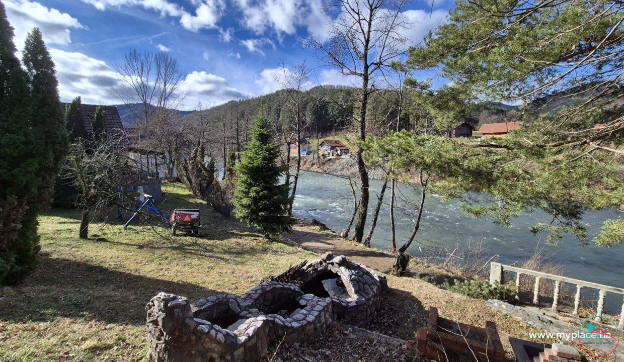 PRVA VIKENDICA-sprat: kupatilo i soba sa kuhinjom. Prizemlje: roštilj sa kuhinjom, prostorija za odmor sa staklenim portalima i prelijepim pogledom na rijeku o natkrivena terasa ispred objekta.