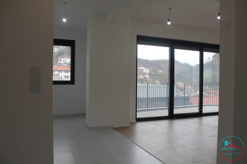 Prodaje se Trosoban i moderno opremljen stan ukupne površine 100 m2 na najatraktivnoj lokaciji Trg Zlatnih Ljiljana odnosno kod samog kružnog toka u Gradu Cazinu. Stan je smješten u novoizgrađenoj poslovno-stambenoj zgradi koja je opremljen savremenim liftom na 5-om spratu, sa prekrasnim pogledom. Čine ga: hodnik, kupatilo, spavaća soba, dječja soba i prostrani dnevni boravak sa kuhinjom iz kojeg se izlazi na balkon terasu. U stanu je odrađeno podno centralno grijanje, interfon sa kamerom i priprema za ugradnju klima uređaja. Svi potrebni infrastrukturni objekti neophodni za moderan život se nalaze u neposrednoj blizini kao što su gradski sud, gradska uprava, policija, tržni centar Ljlijan dok je i gradska bolnica nedaleko od zgrade. Prostorije u stanu su pravilnog oblika, veoma dobro iskorištene i lijepog rasporeda. Stan je u potpunosti završen i spreman za useljenje. U toku je etažiranje zgrade tako da i konačni prepis je moguć u vrlo kratkom vremenu. Nova stambeno-poslovna zgrada u strogom centru Grada Cazina predstavlja jedan od najljepših projekata u Gradu a ističe se vrhunskom kvalitetom, pažljivo planiranim detaljima, strogim nadzorom i korištenjem visokokvalitetnih materijala. Opremljena je vrhunskom termoizolacionom fasadom i PVC stolarijom sa troslojnim UV staklom, roletnama sa elektronskim rukovanjem. Stan predstavlja idealnu priliku za živjenje i pametnu investiciju za budućnost. Iskoristite priliku...